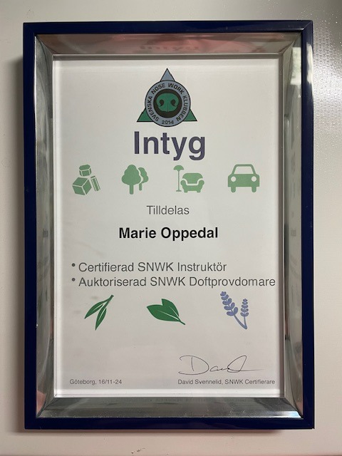 Auktoriserad SNWK Doftprovsdommare, 2024. (Svensk Nose Work Klubb)